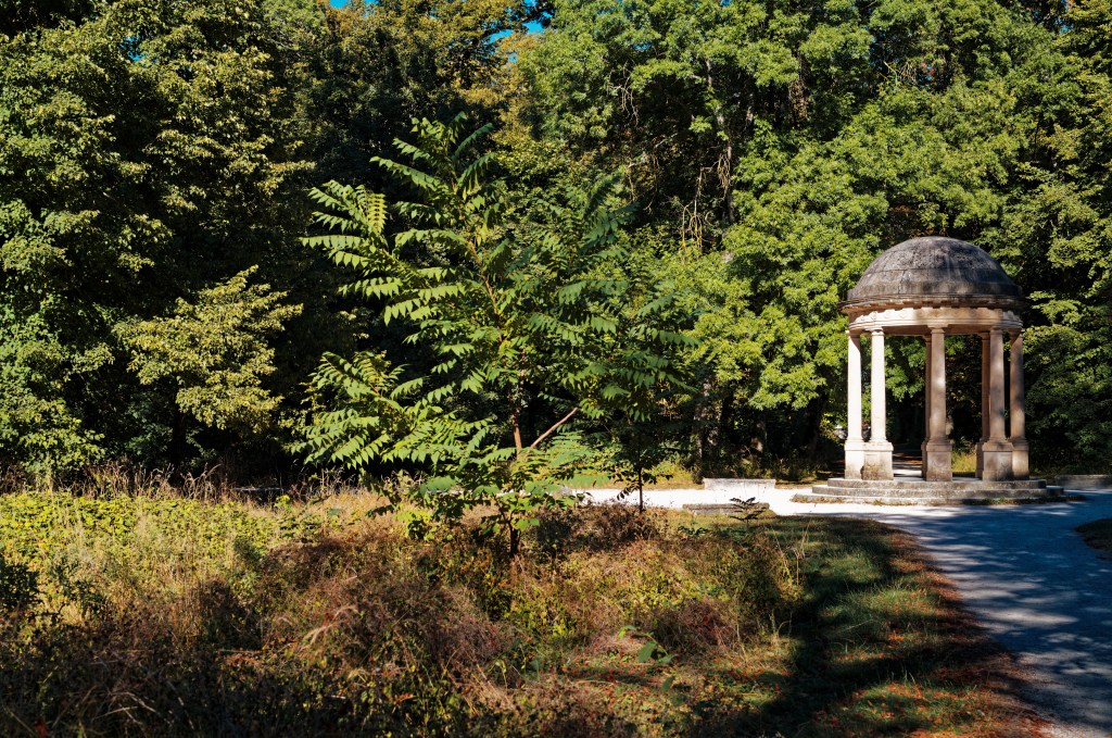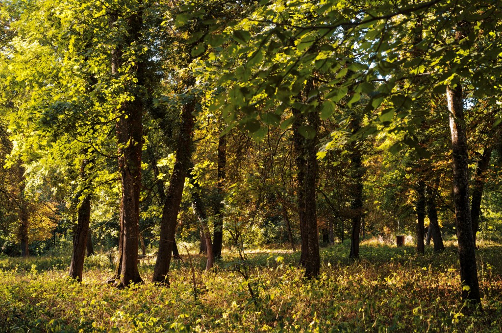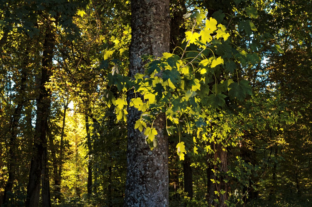 En milieu péri-urbain – ici (photos) au parc de la Colombière (Dijon), le dimanche 7 août – les premiers « flétrissement, rougissement-jaunissement et chutes foliaires parfois encore vertes » manifestent un stress hydrique inquiétant.