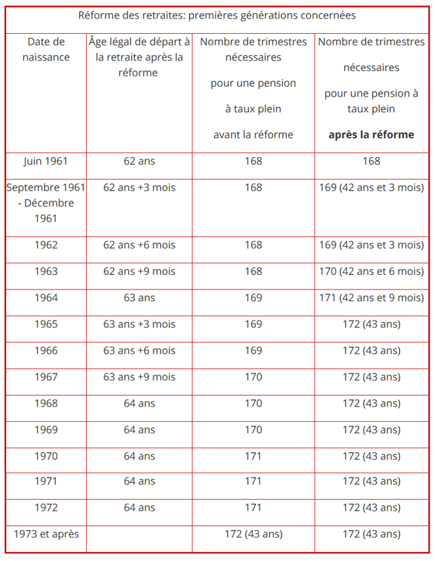 Pour les personnes nées en 1961, départ possible à 62 ans et trois mois.