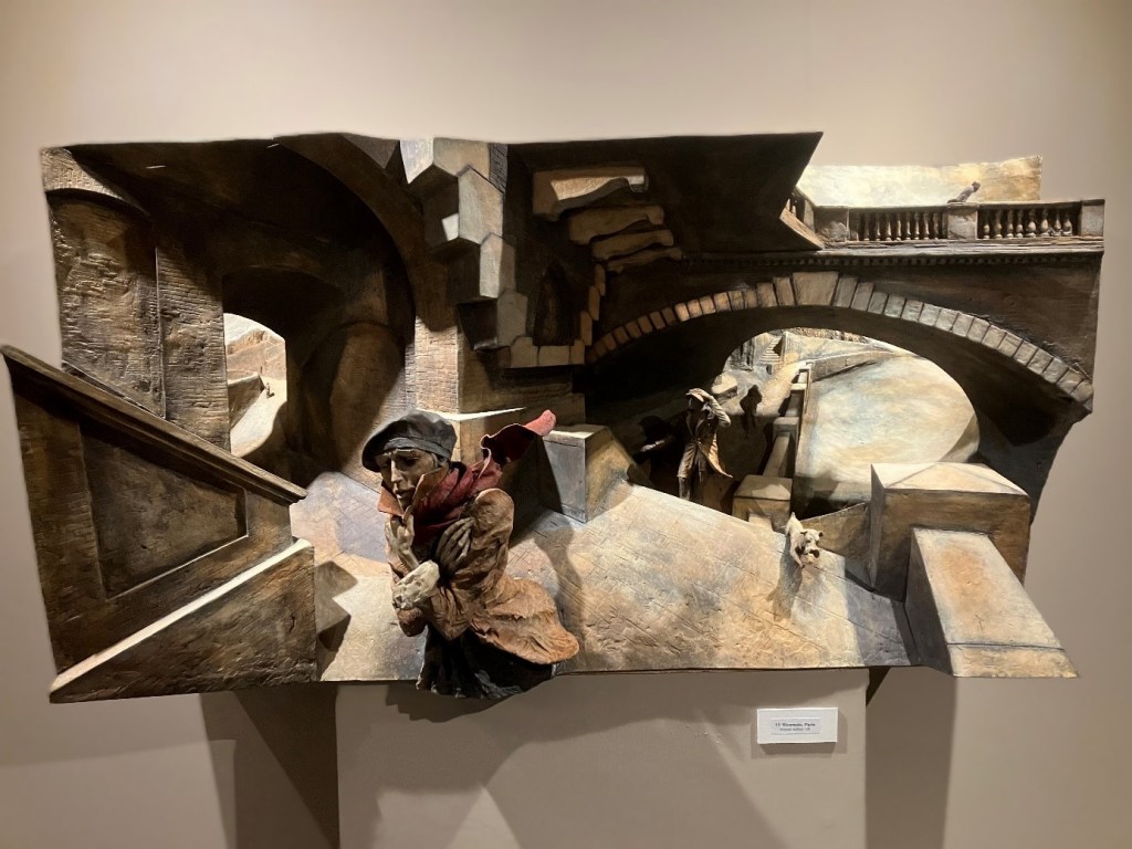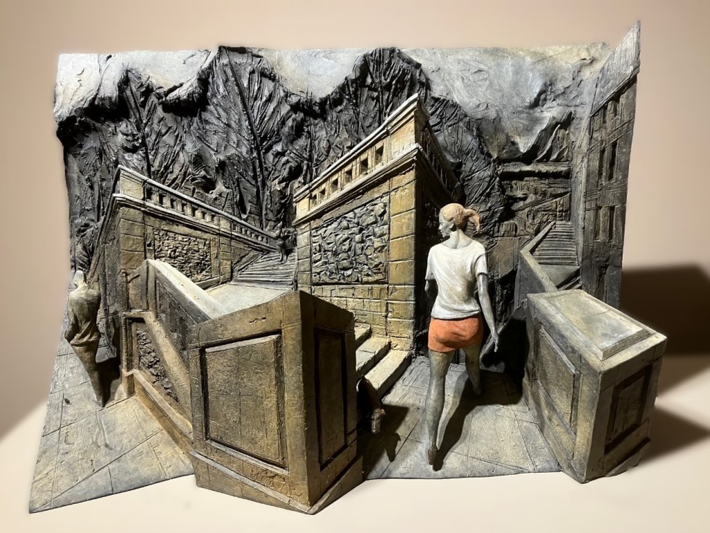 Il nous fait pénétrer dans un monde à part, parfois imaginaire. Il recréé des rues, des monuments, des instants de vie qui ont tous une histoire, et ses décors pourraient avoir existé au Moyen-Âge ou appartenir au prochain millénaire. C’est comme si l’on ouvrait un livre ou que l’on assistait à une pièce de théâtre avec toutes sortes de personnages. Au relief, s’ajoute une vision de la perspective très personnelle et particulièrement originale, efficace, sur un mode ironique, qui laisse transparaître bien des facettes de l’humanité. Ses œuvres ne sont pas dénuées non plus d’une touche spirituelle. Elles peuvent être monumentales, comme « The Battle of Britain Monument », installée à Westminster, ou « The Meeting Place » de la gare Saint-Pancras, de Londres, ou sculptées en petit format.