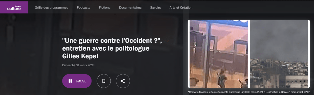 France Culture, dimanche 31 mars 2024