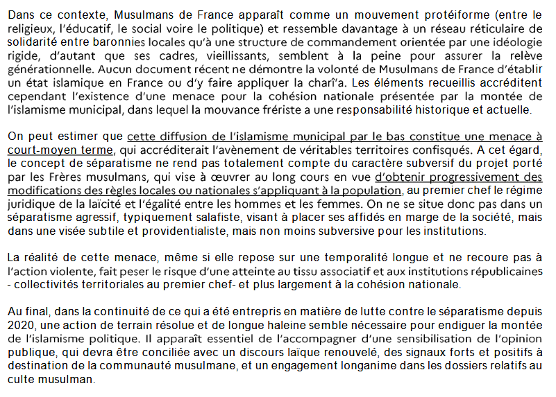 10 – La menace de « la diffusion d’un islamisme municipal » (« Conclusion », p. 65) :