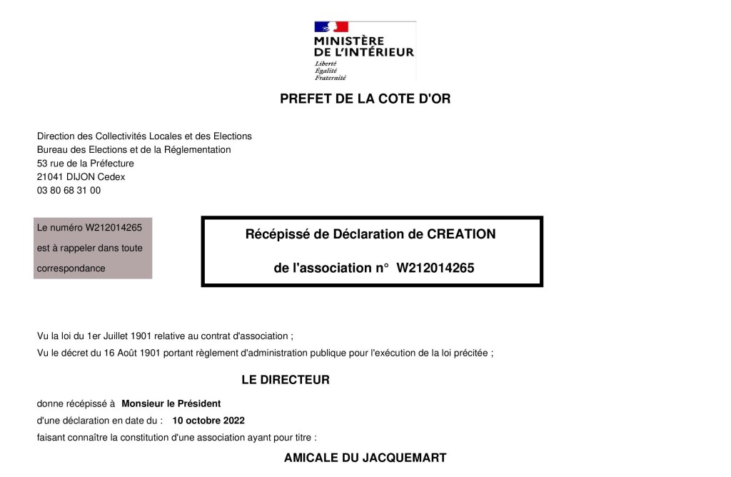 Déclaration enregistrée par la préfecture de Côte-d’Or le 10 octobre 2022.