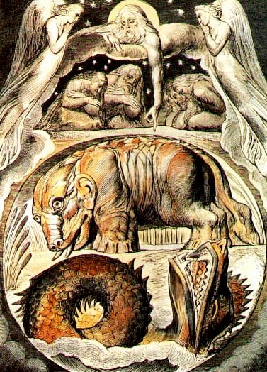 Béhémoth et Léviathan, aquarelle préparatoire de William Blake pour les illustrations du Livre de Job (1826)